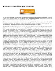 Read BEN POLAK PROBLEM SET SOLUTIONS PDF ManyBooks